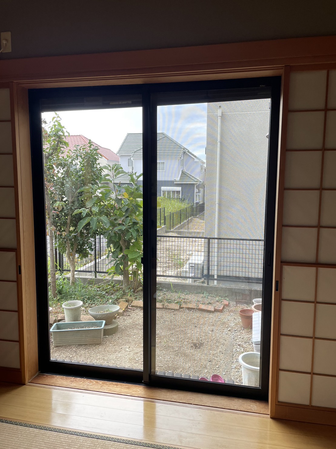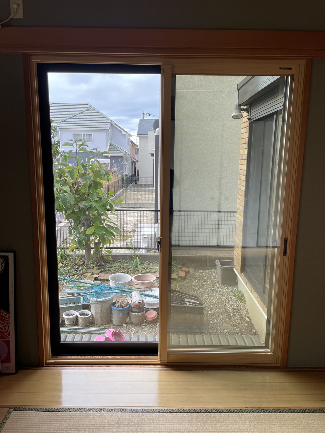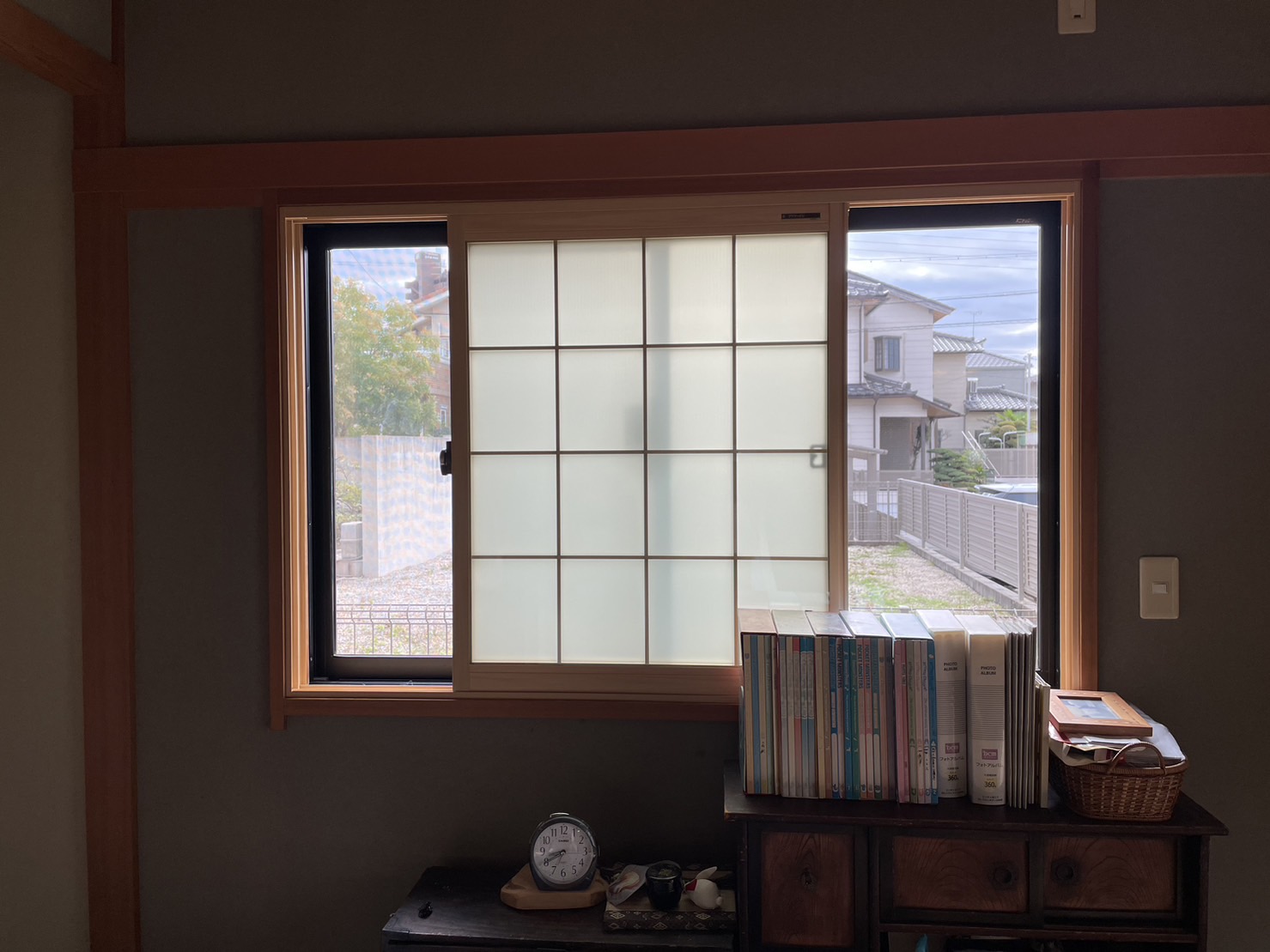 戸建て住宅全体のリフォーム工事と併せて内窓取付をさせていただいたお客様。ご相談の際に「和室に付いている障子はどうなりますか?」とご質問がありました。そこで、ご提案したのは、Low-E複層ガラスに組子を合わせた和室用の『荒間格子デザイン』の内窓。見た目はまるで障子のようで、内窓取付後も全く違和感がありません。和室の雰囲気を変えることなく遮熱・断熱性能を向上させることができました。
