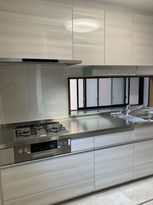 きれいに使われていたキッチンですが、少し壊れたてきたところが気になるとのことで、キッチンの交換をさせていただきました。今回取付けたのは、クリナップさんの『ステディア』で、汚れや傷に強い人気のキッチンです。