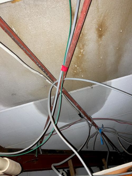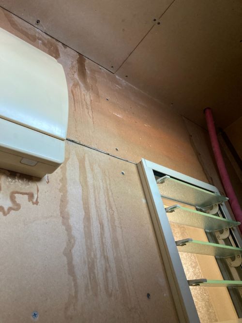 上には2階のキッチンがあるそうなので、キッチンからの漏水が考えられます。