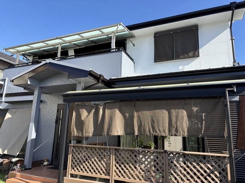 当社で22年前に建てていただいたお家。前回の外壁塗替えから12年が経ち「そろそろ塗替え時期でしょうか…?」とご相談をいただきました。現地に伺い、壁を触ってみると手に粉が付く〝チョーキング″の症状が起きていたので、塗替えをさせていただくことが決まりました。