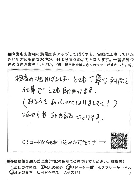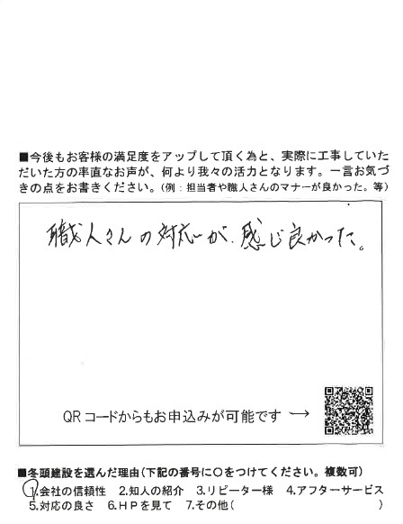 お客様の声名古屋市天白区にて外壁塗装・他修繕工事のお客様の声 名古屋市天白区の戸建てにて、外壁塗装・他工事のお客様よりお喜びの声を頂きました。 『雨で工事日程の変更が続きましたが、こちらの都合を優先して大変満足な外壁塗装となりました。』との事でした。 いつも工事のご依頼をいただきましてありがとうございます。弊社の外壁塗装の職人は丁寧な仕事でしっかりと塗装いたしますので、15年は安心ですね。 スタッフ一同大変感謝しております。またの機会にもぜひご相談お待ちしております!ありがとうございました!! 他のお客様の声 名古屋市名東区にてマンション内部改修工事のお客様の声名古屋市南区にてエコキュート交換工事のお客様の声名古屋市昭和区にて外壁塗装、ポスト・門灯取替工事のお客様の声名古屋市瑞穂区にてユニットバス入れ替えのお客様の声
