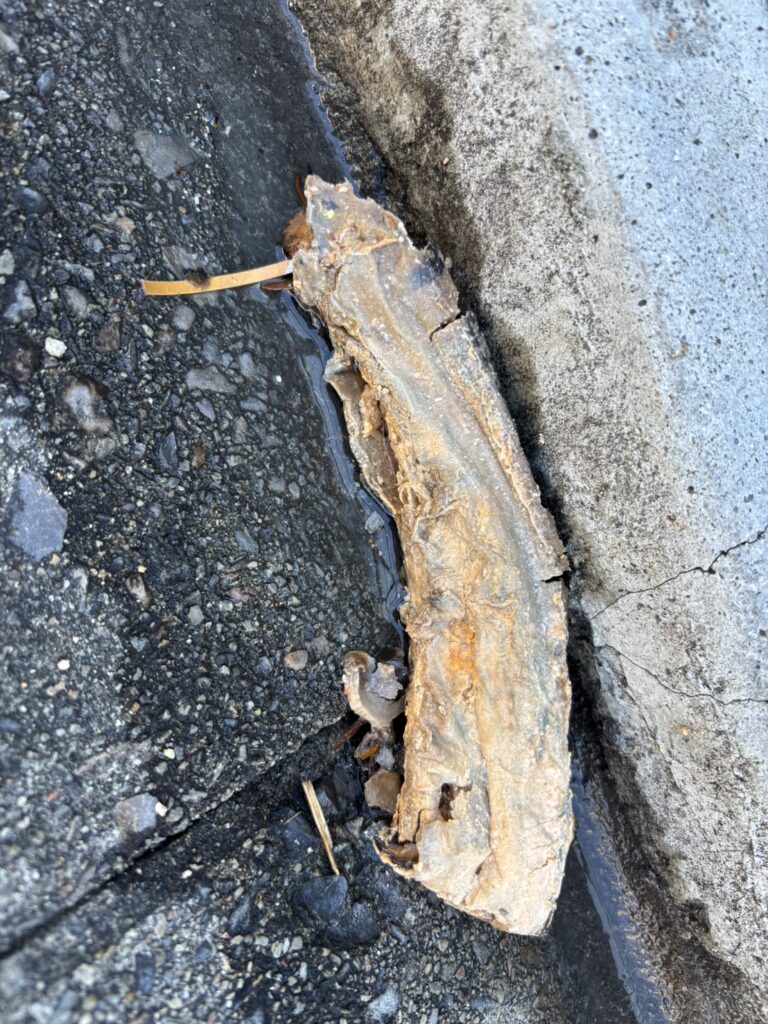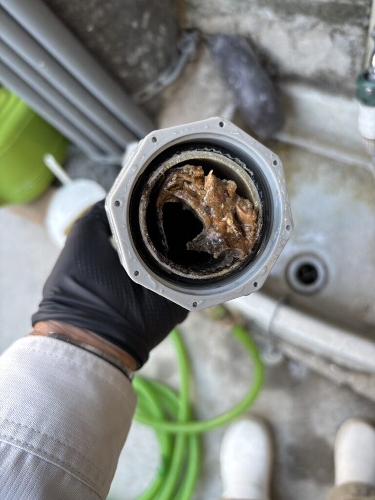 外壁塗り替え外壁水洗い+排水管清掃で お家スッキリ! 当社では、外壁塗替工事 初日の水洗い時に排水管清掃をサービスで行います。排水管の汚れや詰まりをスッキリきれいにさせていただきます!! 築4年のマンション 汚れたキッチンの排水管からは… 巨大な油汚れの塊が出てきました!! お問い合せ
