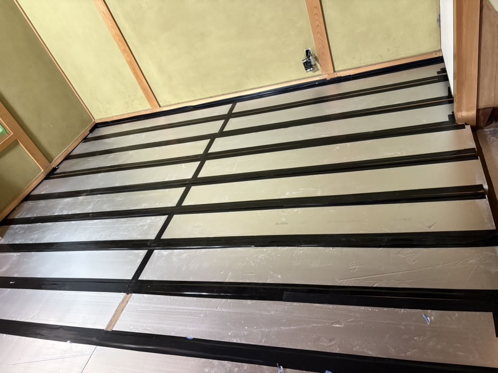 床:アキレス硬質ウレタンボード60㎜(2層)+フローリング仕上げ DAIKENトリニティグランデ ウォールナット柄