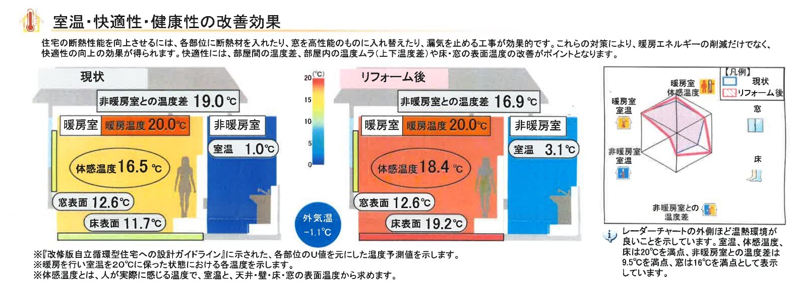 寒さを感じる一番の要因が床の温度なので、今回の工事では床の断熱を強化することになりました。シミュレーション結果では床温度が7.5℃上がる計算です。