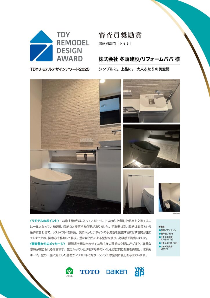 まさか、トイレ全体をリモデルすることになるとは考えていませんでしたが、結果的には、素敵なトイレが完成してとても嬉しく思っています。「室内が狭くなるのはイヤ、手洗器は別置き、収納は必須」という希望の条件は全て叶えていただくことができました。
