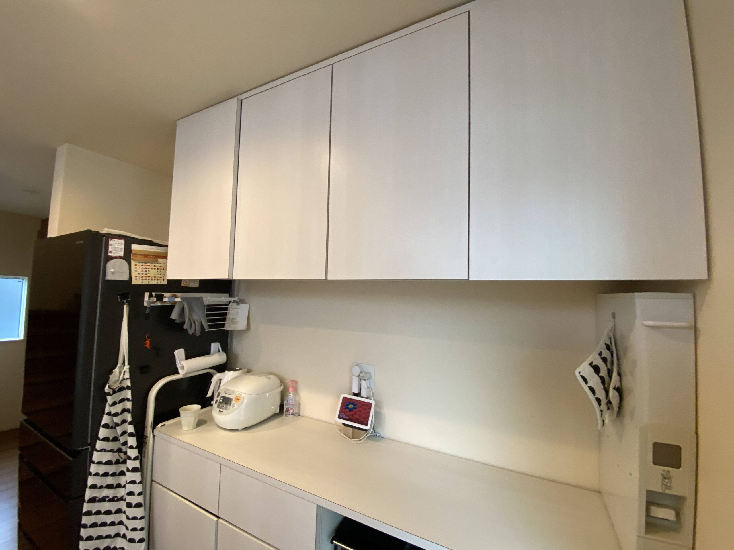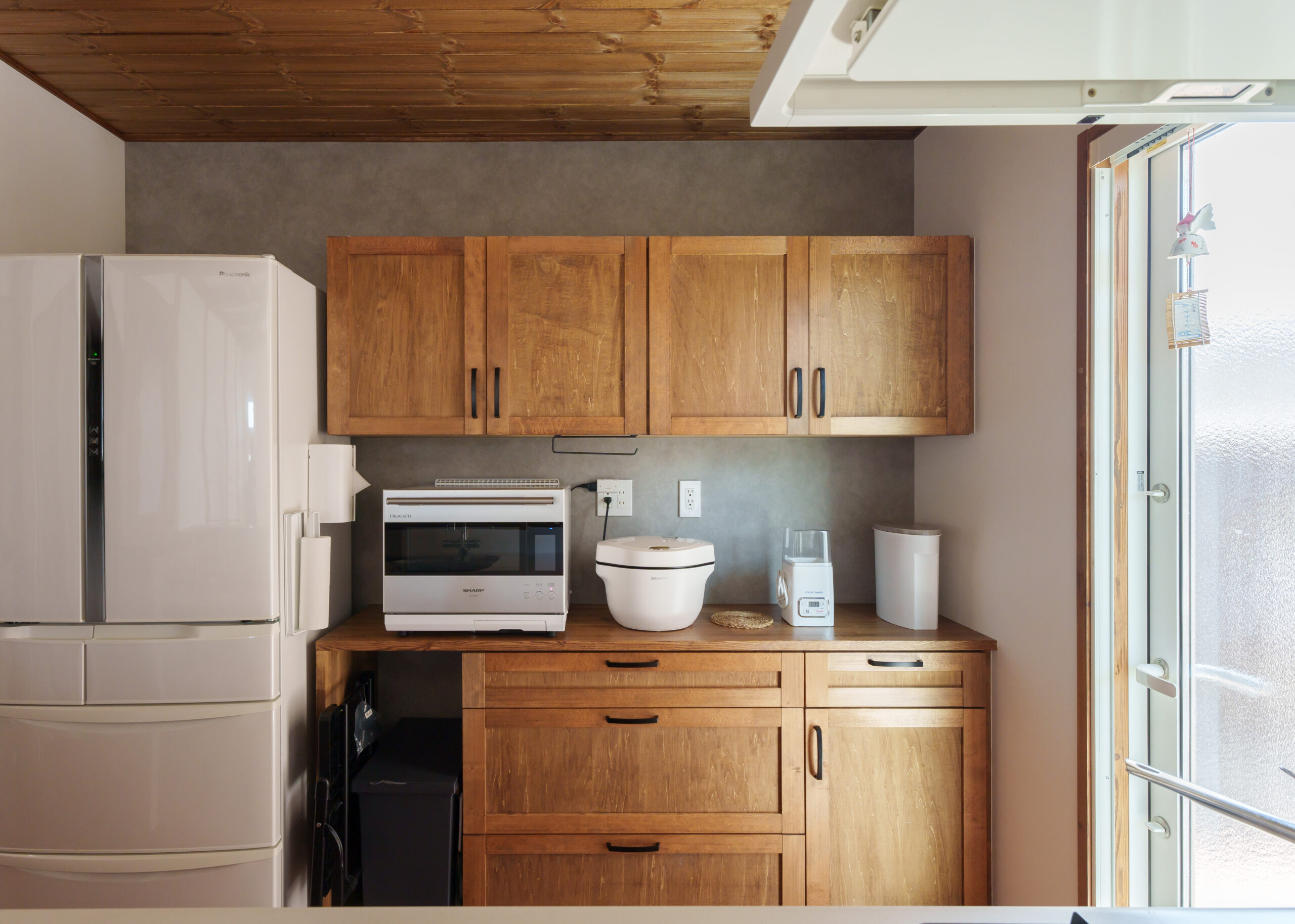 まだまだ使用できそうでしたが収納棚は思い切って処分。無垢材でイメージ通りのオリジナル造作家具を作成しました。