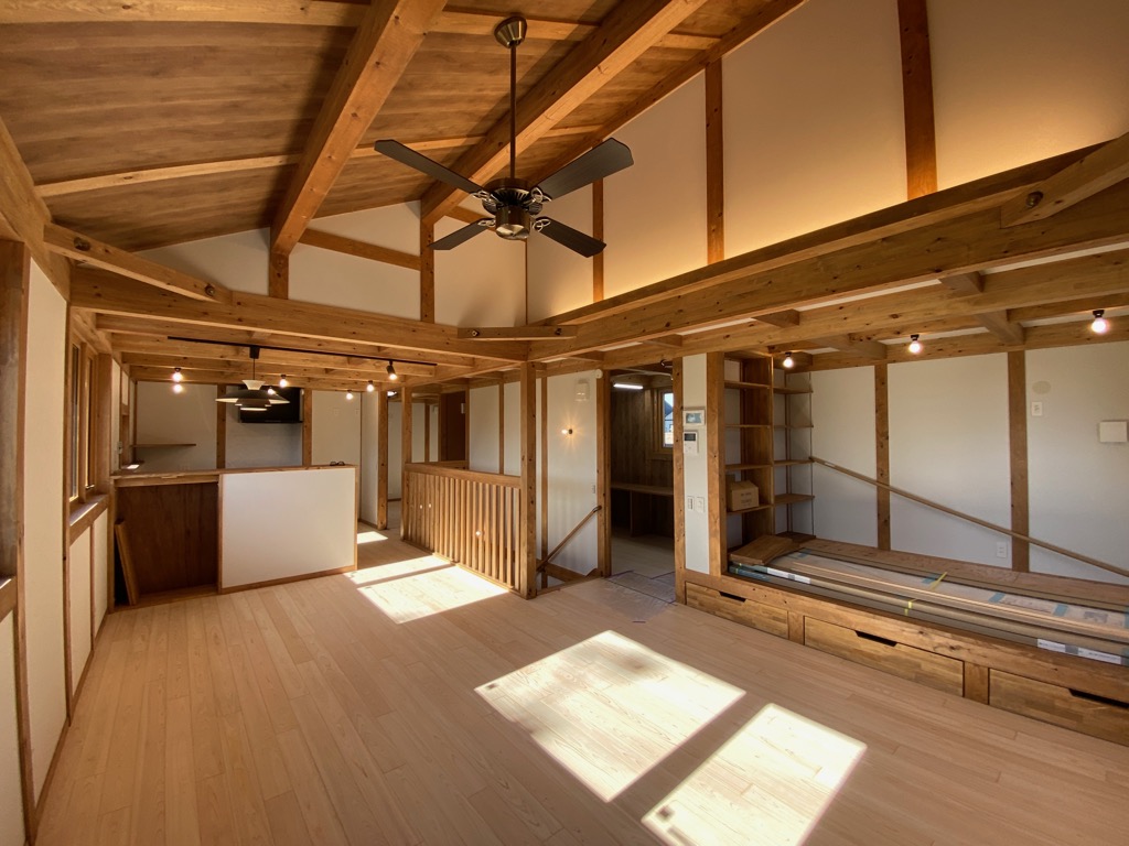 風が強く寒い日でしたが、室内はエアコン1台でポカポカ☀お家の性能の良さを感じていただけたかと思います。勾配天井で明るいリビングを見たお客様は「気持ちいいですねー」と褒めてくださいました。