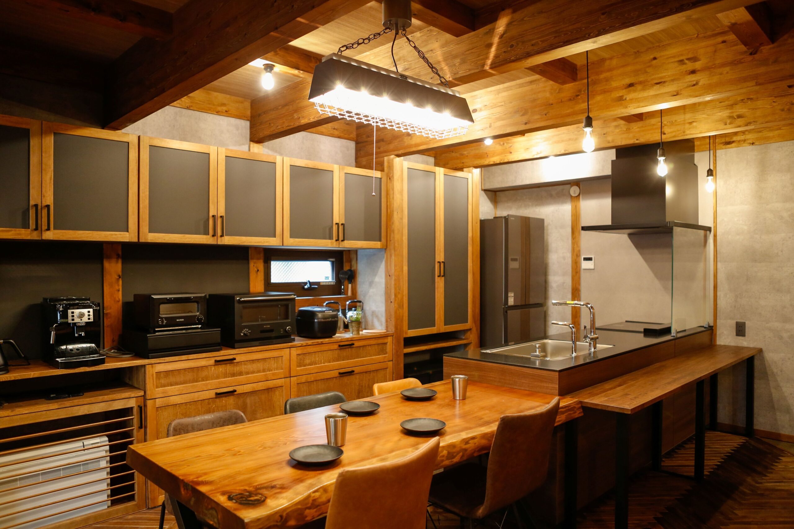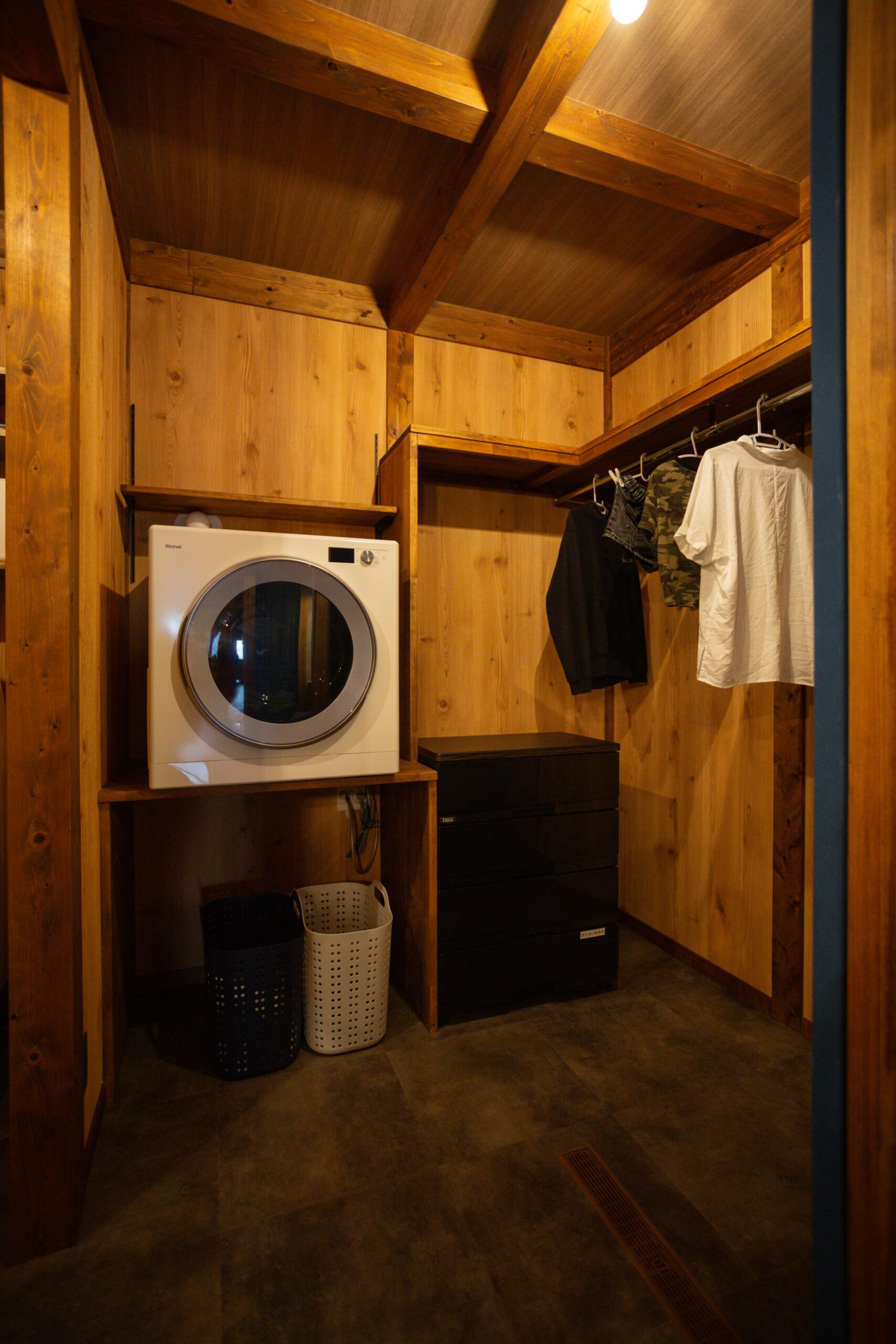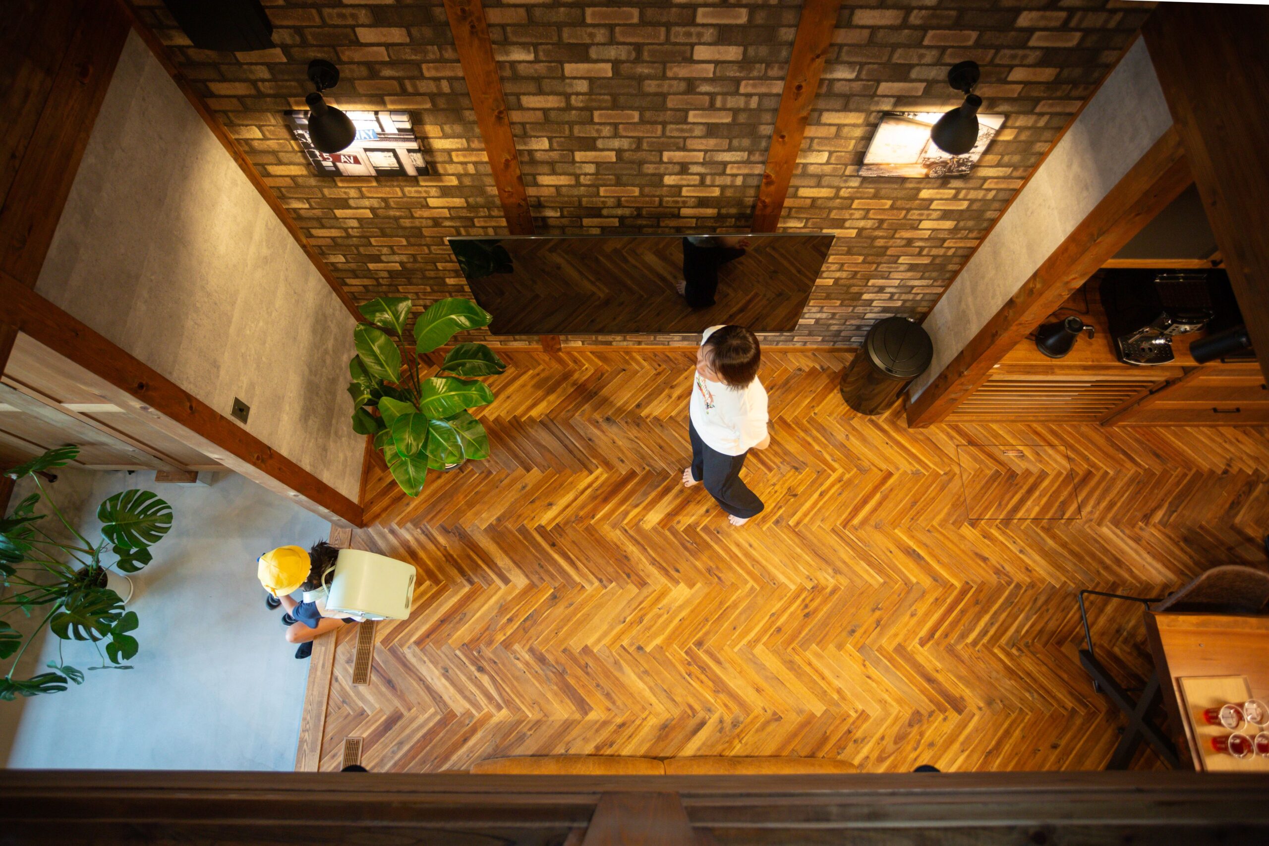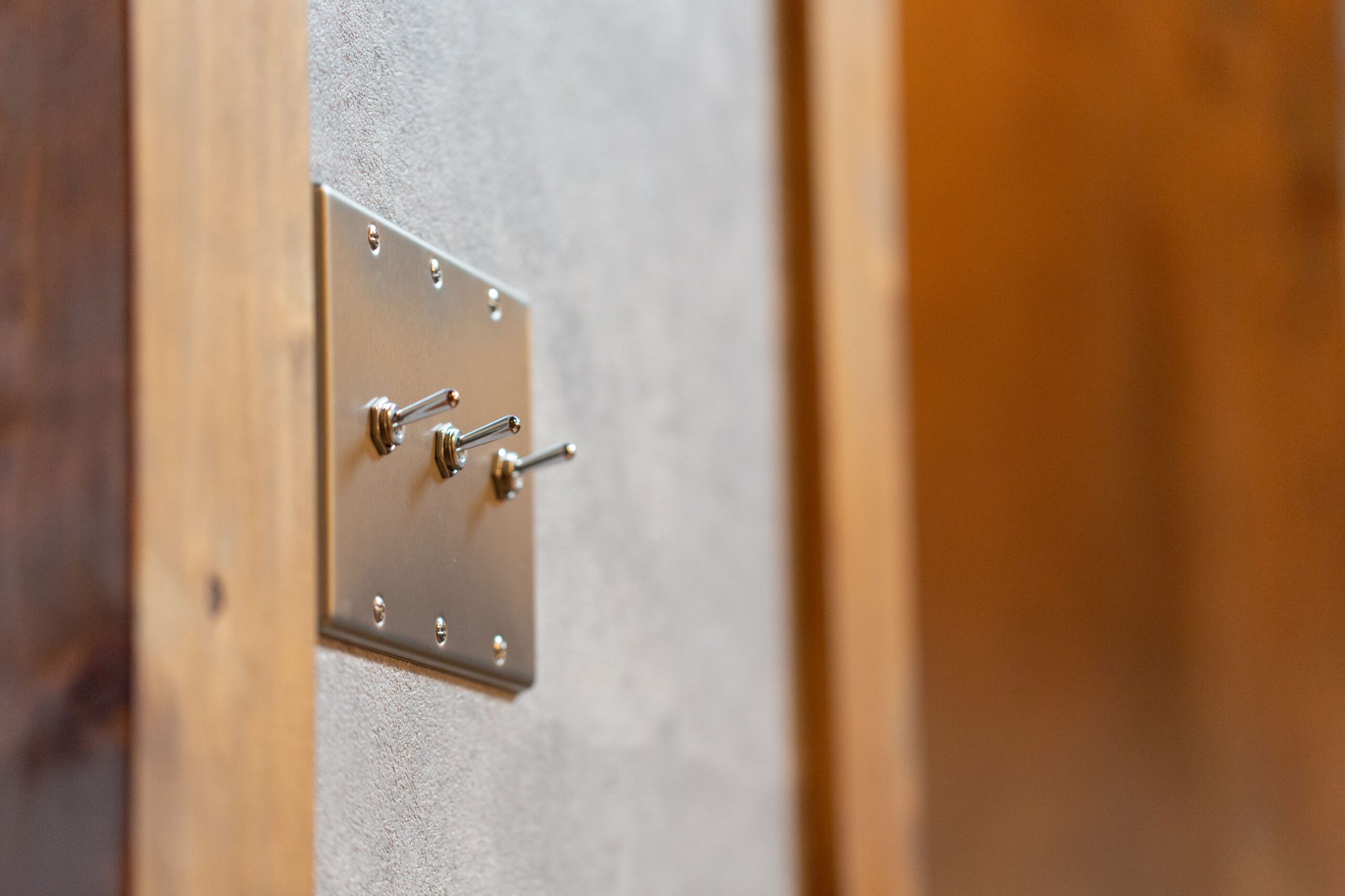 グレーを基調としたスタイリッシュな外観。玄関の扉を開けるとネイビーのガラスドアとヘリンボーンの床をポイントとしたダークでカッコイイ『ブルックリンスタイル』の空間が広がります。スタイルに統一感をもたせるよう、造作家具や電気のスイッチなど細部までこだわっています!